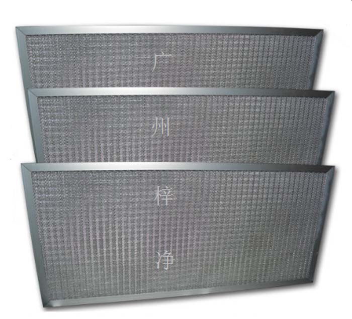 2、多層折疊擴張鋁箔或不銹鋼網是以不同的密度,孔徑由粗到細的排列,使空氣通過濾網時多次改變流動方向,增大其集塵能力及效率。